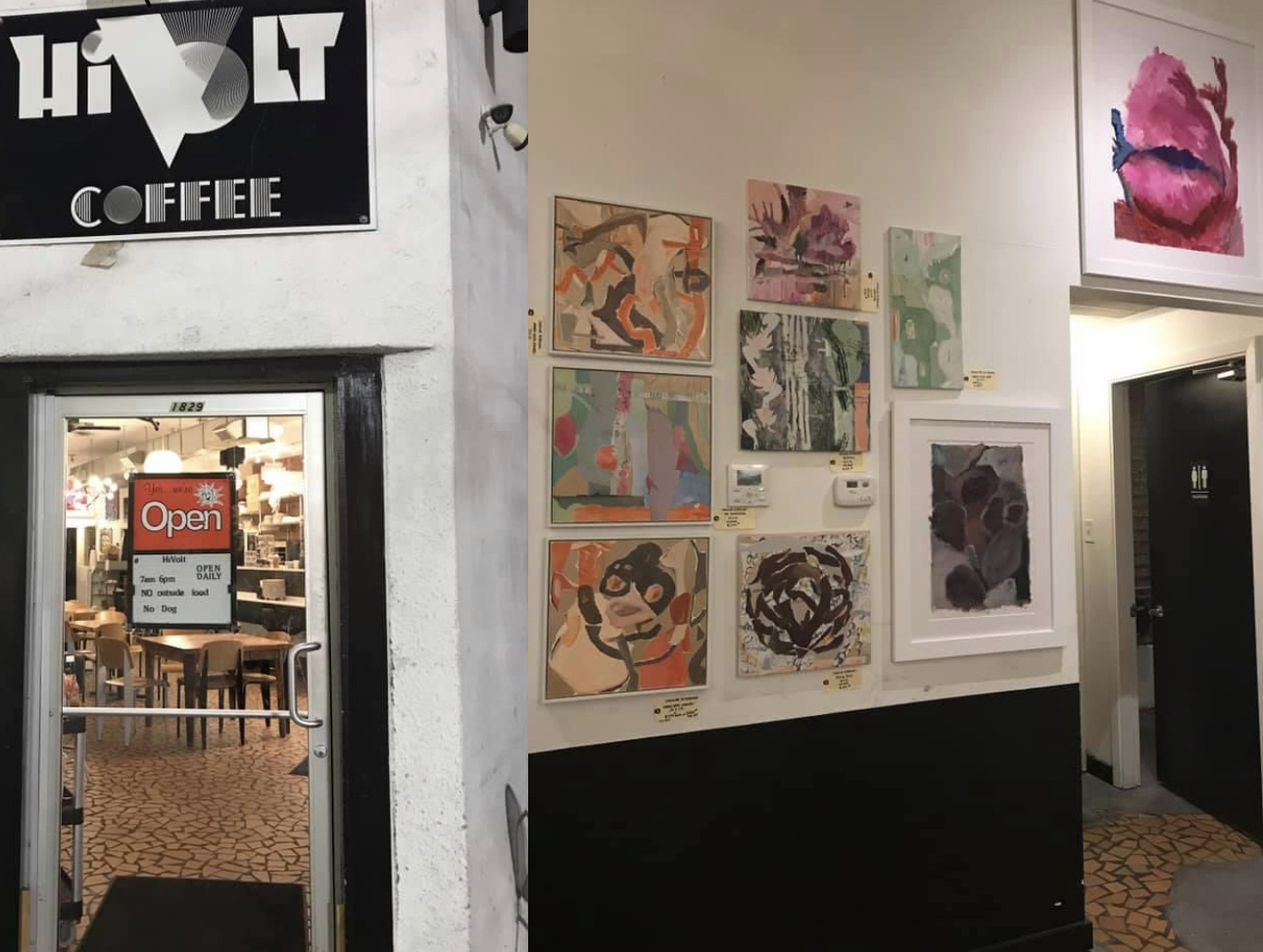 Assisted client in hanging her art at a coffee shop.